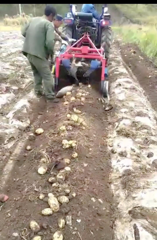 紅薯收獲機是我公司新上市的一款新型收獲機械,該機根據(jù)薯土分離不好的情況,增加為雙排輸送鏈條,并進行加長,同時改進了原來傳統(tǒng)的抖動方式;新抖動方式達到抖動波浪式,平穩(wěn)、運行效果更好,去皮更少。經(jīng)有代表性地區(qū)試驗,適應(yīng)性、堅固耐用性、及可靠性非常滿意,每小時可收獲15畝以上,非常適合東北地區(qū)及內(nèi)蒙等地大面積用戶使用,該機配套動力40KW以上。