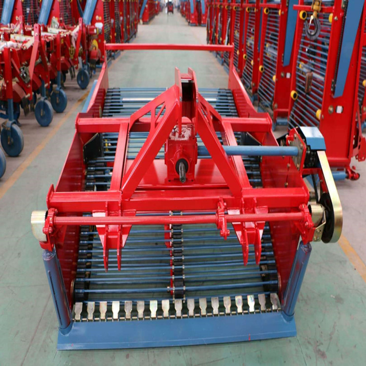 一次完成紅薯的挖掘或拔取、分離泥土以及摘果、清選等作業(yè)。有兩種機型:一是挖掘式。采用三角形挖掘鏟把紅薯連同泥土鏟起,經(jīng)分土輪分離出大量泥土后,再經(jīng)輸送裝置送入摘果裝置。二是拔取式。由每行一對環(huán)形夾持輸送膠帶夾持花生莖蔓后,連同紅薯拔起,經(jīng)輸送裝置送入摘果裝置用于砂土地叢生蔓紅薯的收獲。這兩種機型的摘果裝置采用兩個或多個串列的彈齒滾筒和凹板,滾筒上的彈齒將紅薯莢果梳脫,并伸入凹板槽縫以降低花生蔓莖的通過速度。