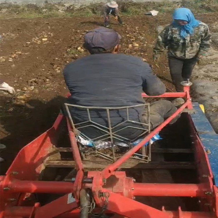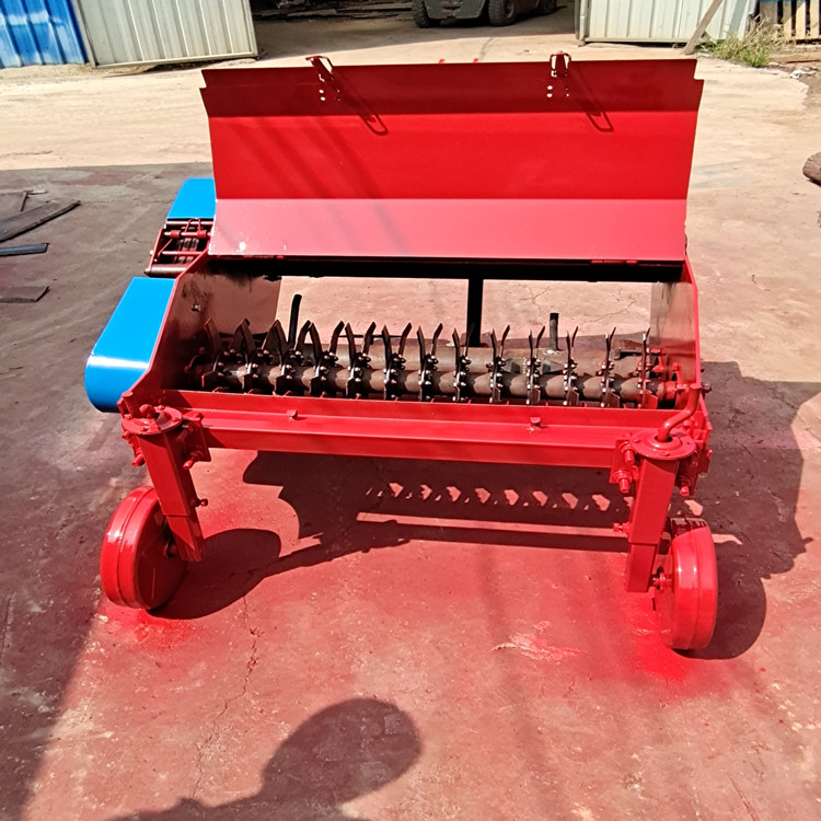 一次完成紅薯的挖掘或拔取、分離泥土以及摘果、清選等作業(yè)。有兩種機型:一是挖掘式。采用三角形挖掘鏟把紅薯連同泥土鏟起,經分土輪分離出大量泥土后,再經輸送裝置送入摘果裝置。二是拔取式。由每行一對環(huán)形夾持輸送膠帶夾持花生莖蔓后,連同紅薯拔起,經輸送裝置送入摘果裝置用于砂土地叢生蔓紅薯的收獲。這兩種機型的摘果裝置采用兩個或多個串列的彈齒滾筒和凹板,滾筒上的彈齒將紅薯莢果梳脫,并伸入凹板槽縫以降低花生蔓莖的通過速度。