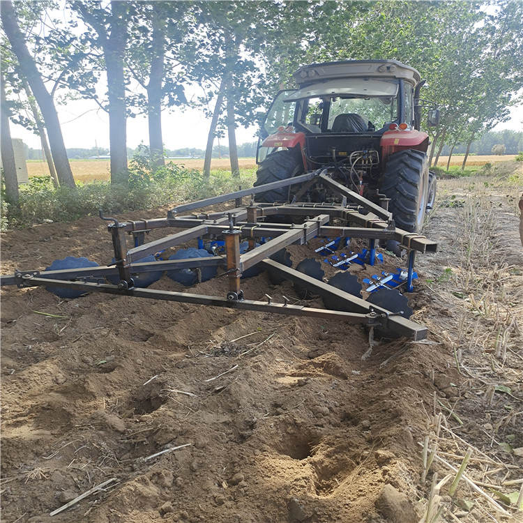 山東無(wú)墑犁生產(chǎn)廠家21年研發(fā)的新款無(wú)墑犁寬度可調(diào),新型提供一種無(wú)墑溝懸掛犁,包括深耕犁和旋耕機(jī),旋耕機(jī)設(shè)置在深耕犁尾部,深耕犁包括雙橫梁犁架,雙面犁鏵,連接件,單面犁鏵,限深輪,雙橫梁犁架上橫向設(shè)置有橫梁,雙橫梁犁架左右兩側(cè)設(shè)置有限深輪,雙橫梁犁架前端設(shè)置有雙面犁鏵,橫梁上固定有連接件,后面有新型平傷器。平墑器可以把深翻過(guò)的傷溝鏟平如圖所示: